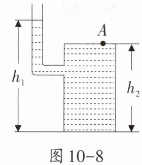 9. 如图10 - 8所示,水平桌面上的容器装有某种液体,液体的体积为$2.0×10^{-3}m^{3}$,液体的深度分别为$h_{1}= 0.5m$、$h_{2}= 0.4m$。若容器重为20N,底面积为$2.0×10^{-3}m^{2}$,容器底受到液体的压强为$5.0×10^{3}Pa$。不计容器壁的厚度,g取10N/kg。求: