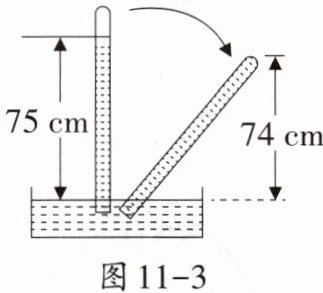 3. 大气压与我们的生活密切相关,某物理兴趣小组做测量大气压的实验,如图11-3所示。原来玻璃管竖直,后来让玻璃管倾斜,水银充满全管。下列说法中不正确的是(