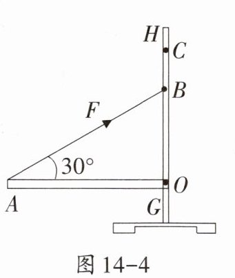 5. 如图14 - 4所示为某实践小组制作的斜拉索桥模型,其中立柱GH为桥塔,桥面OA为长30cm、重5N的质地均匀木条,可绕O点转动,A端用细线与立柱GH上的B点相连。则桥面OA的实质是