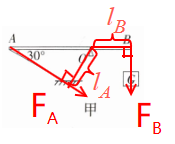 已知$OA = \frac{2}{3}L$,根据直角三角形中$30^{\circ}$所对直角边是斜边的一半,可得$F_{A}$的力臂$l_{A}=\frac{1}{2}OA$