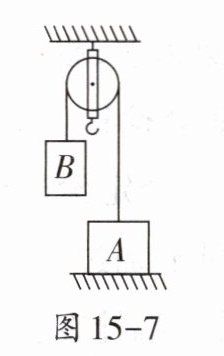 7. 如图15 - 7所示,固定在天花板上的定滑轮所受的重力为1N。重物A放在水平地面上,重物B通过细绳与重物A相连。已知重物A所受的重力为6N,A的底面积为$10cm^2$。当装置处于静止状态时,A对地面的压强为3500Pa,若不计绳重和摩擦,B所受绳子竖直向上的拉力为