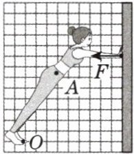 8. 跨学科·学科综合 2024·仪征月考 某同学锻炼时,双脚并拢,脚尖O触地,脚后跟踮起,手掌支撑在竖直墙壁上,手臂水平,A为人体重心所在位置。此时墙壁对手掌的支撑力F如图所示。若该同学质量为60kg,不计墙壁对手掌的摩擦力,墙壁对她的支撑力约为____N;若她只将胳膊弯曲,墙壁对手掌的支撑力F将会____。(g取10N/kg)
