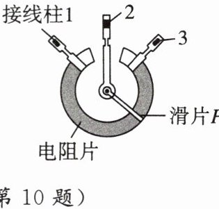 10. 如图所示为可调亮度台灯及其用于调光的电位器结构图,电位器应与灯泡