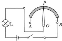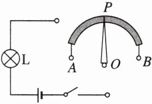 11. [2024·西安西咸新区期末] 如图为亮度可调台灯的电路示意图,其中AB是一段电阻丝,OP是滑动片(可绕O点旋转),P端与电阻丝接触良好,闭合开关,当OP顺时针滑动时灯泡L变亮,请将图中电路连接完整。