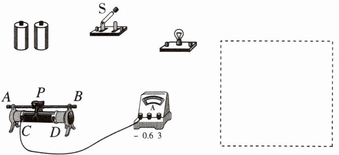 (1)将图中的实物电路连接完整(电流小于0.6 A),并在右边的虚线框内画出电路图。