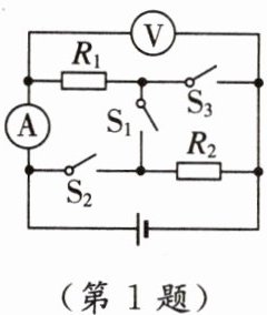 1.(科学思维 科学推理)如图所示,电源电压恒定,先只闭合开关$S_{1}$,两电表均有示数;再断开$S_{1}$,同时闭合$S_{2}和S_{3}$,此过程中 (