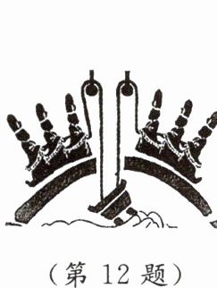 12. [2024·湖北] 如图是汉代画像砖上描绘的《史记》中“泗水取鼎”画面,两边各有数人用绳子通过滑轮拉起掉落水中的鼎。图中的这种滑轮