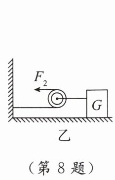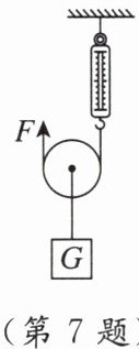 7. [2024·溧阳期中] 如图所示,弹簧测力计读数为18N,动滑轮重为2N,不考虑绳重和摩擦。则拉力F的大小和重物受到的重力G分别为(
