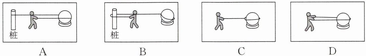 A [点拨]从图中可以看到,A方法中有两段绳子挪动石墩,不计绳重及绳与石墩之间的摩擦,人对绳子的拉力为石墩与地面的摩擦力的一半;B、C、D方法中,不计绳重及绳与石墩之间的摩擦,人对绳子的拉力都等于石墩与地面的摩擦力,都不省力。