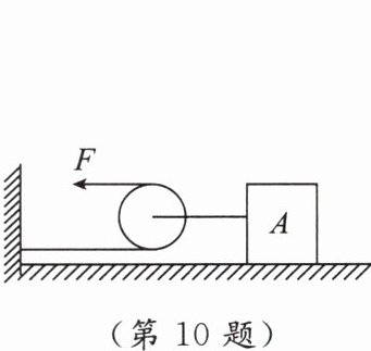 10. 如图所示,通过滑轮沿水平方向拉动重为20N的物体A,不计滑轮重及其摩擦。当拉力F为4N时,物体A受到的拉力为