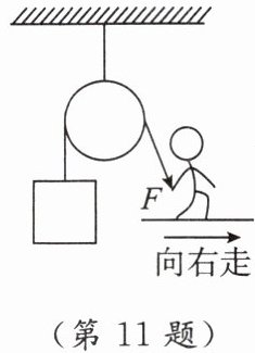 N。他向右行走时,物件匀速上升,绳子拉力F将不变