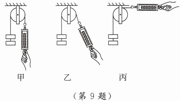 9. 如图为小亮同学在“探究定滑轮的使用特点”实验过程中的情景,此时他是在探究使用定滑轮时,