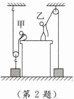 2. [2024·河南]如图,甲、乙两人用不同的装置,在相同时间内把质量相等的货物匀速提升到同一平台,不计绳重及滑轮的摩擦。下列说法正确的是(