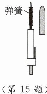 15. [2024·苏州相城区期中] 把常用的按钮式圆珠笔笔尖朝上用力按下后放手,它会弹起,拆开后发现,它能弹起的原因是内部装有一根弹簧,如图所示。从松手到笔离开桌面的过程中,笔的动能