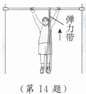 14. [2024·徐州邳州期中] 引体向上是同学们喜欢的一项体育运动。如图,臂力小的小明借助弹力带进行训练,他用脚蹬弹力带,弹力带对他施加一个向上的力,随着小明身体上升,弹力带对他向上的力的大小变化情况是