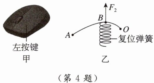 4. [2024·无锡校级期中] 如图甲是一款电脑鼠标,它的按键可看作简单的杠杆,如图乙所示,AO为按键,O点为支点,请在图乙中画出在A点按下按键的最小动力以及动力的力臂。