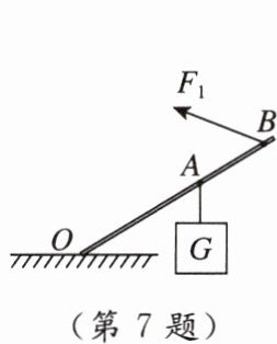 3. 2024·西安西咸新区期中 跨学科·学科综合 长期低头是引起颈椎病的重要原因。低头时头部及颈椎简化成如图所示的杠杆OA,O为支点,A为头部的重心,F为斜方肌的拉力。请在图中画出头部所受重力G的示意图和斜方肌拉力F的力臂l。