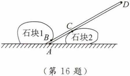 16. 如图,在撬棒AD上作出撬起“石块1”的最小力及对应的力臂。
