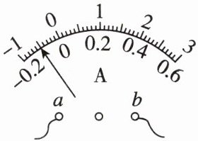 18. [2024·南京溧水区月考]如图是实验室常用的一种电流表,零刻度不在表盘的最左端。当导线a、b分别与标有“—”和“3”的接线柱相连时,电流表指针偏转情况如图所示,此时电流是从导线