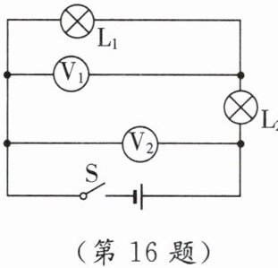 16. 如图所示,闭合开关 S,灯$ L_1、$$L_2 $是