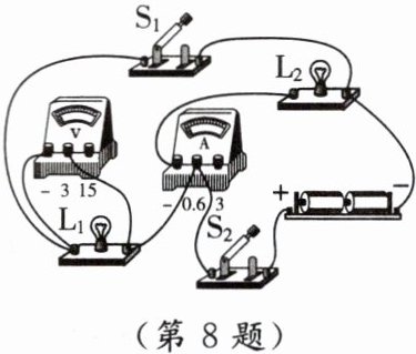 8. [2024·陕西澄城一模]如图所示的电路,闭合开关$S_{1}$、$S_{2}$后,小灯泡$L_{1}和L_{2}$正常发光,电流表和电压表均有示数。下列说法正确的是(