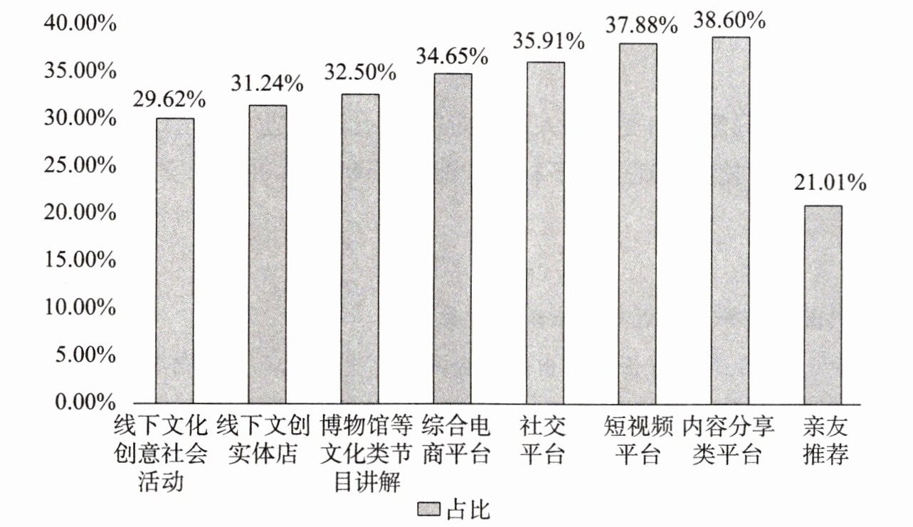 【据题精析】B.根据材料四所给的统计图可知,2024年中国消费者了解文创产品相关信息的渠道占比从高到低依次是内容分享类平台、短视频平台、社交平台、综合电商平台、博物馆等文化类节目讲解、线下文创实体店、线下文化创意社会活动、亲友推荐。故本项表述错误。
