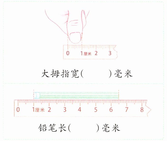 2. 写字时要做到“一尺、一拳、一寸”,这里的“一尺”就是写字时眼睛与桌面或书本的距离。“一尺”可能表示的是( )。
