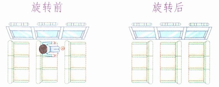 【点拨】根据旋转的特征,座椅旋转后,荣老师还在同一排,原来的位置靠窗,旋转后靠过道,即由窗向过道数第三个座椅,茶杯在他后面一排的插袋中。