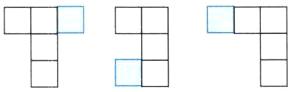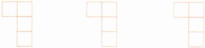 2. 下面三个图形都是由4个完全相同的正方形组成的,请你用三种不同的方法分别在下面的三个图形中添上一个同样大小的正方形,使它们都成为轴对称图形。(12分)