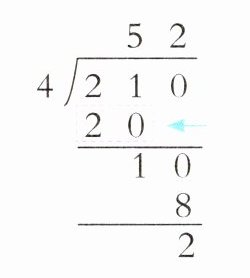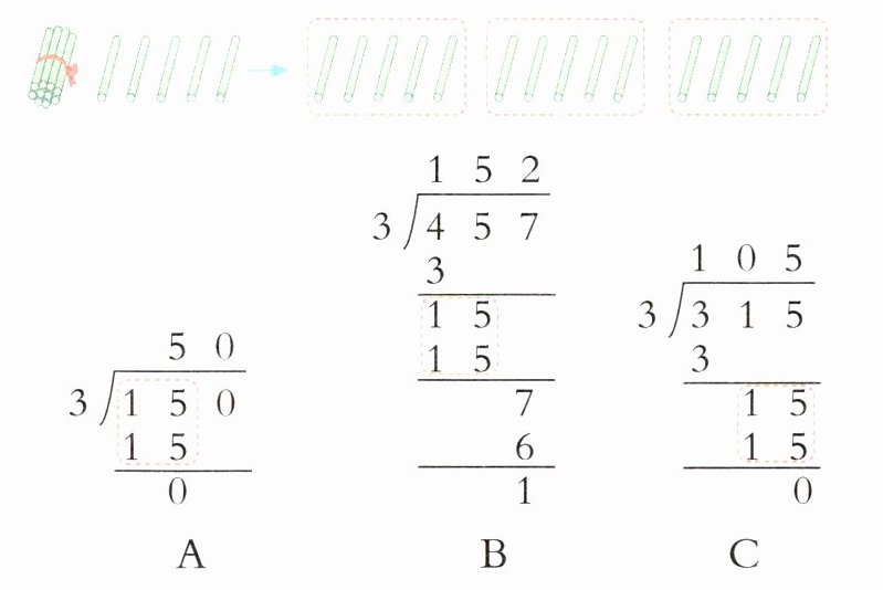 2. 新考法知识本质 学校买进210本课外书,平均分给4个班,每个班分得多少本?竖式中箭头所指的数表示的意思是( )。