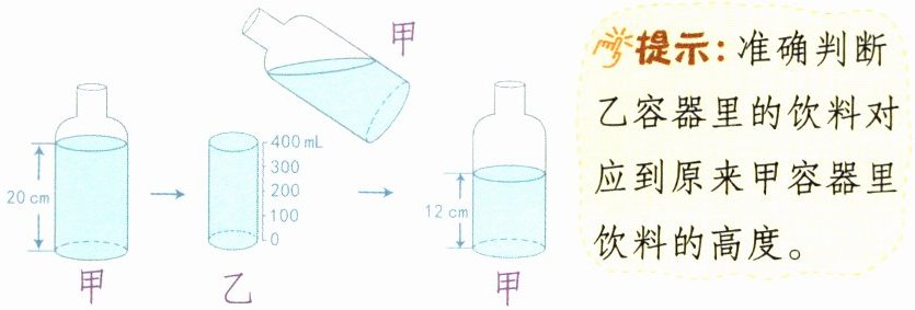 6. (易错题)如图,龙龙用这样的方法量得原来甲容器里的饮料大约有多少毫升?