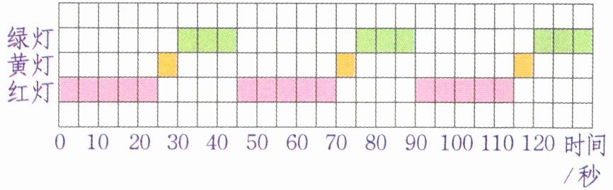 3. 【徐州市】某路口的红绿灯以固定的规律发生变化,下图表示前135秒三种灯亮、熄的变化情况,涂色表示灯亮,空白表示灯熄。第175秒时是(