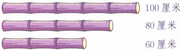 2. 典典买了三根甘蔗(如图),它们的平均长度是多少厘米?