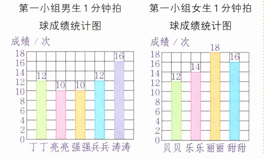 答:男生平均每人1分钟拍12次,女生平均每人1分钟拍15次。