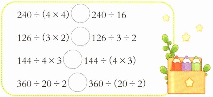 【点拨】根据“一个数连续除以两个数,等于这个数除以这两个数的乘积”填数和运算符号。