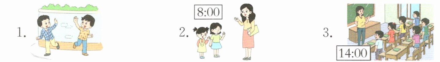 二 问候语辨析 根据图片选择合适的词汇,将它抄写在四线三格内。