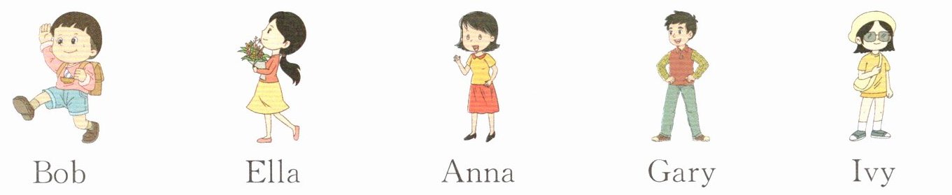 一 在集合点,老师拿着名单,让同学们根据名字首字母在字母表中的顺序排队。猜一猜他们的顺序吧。