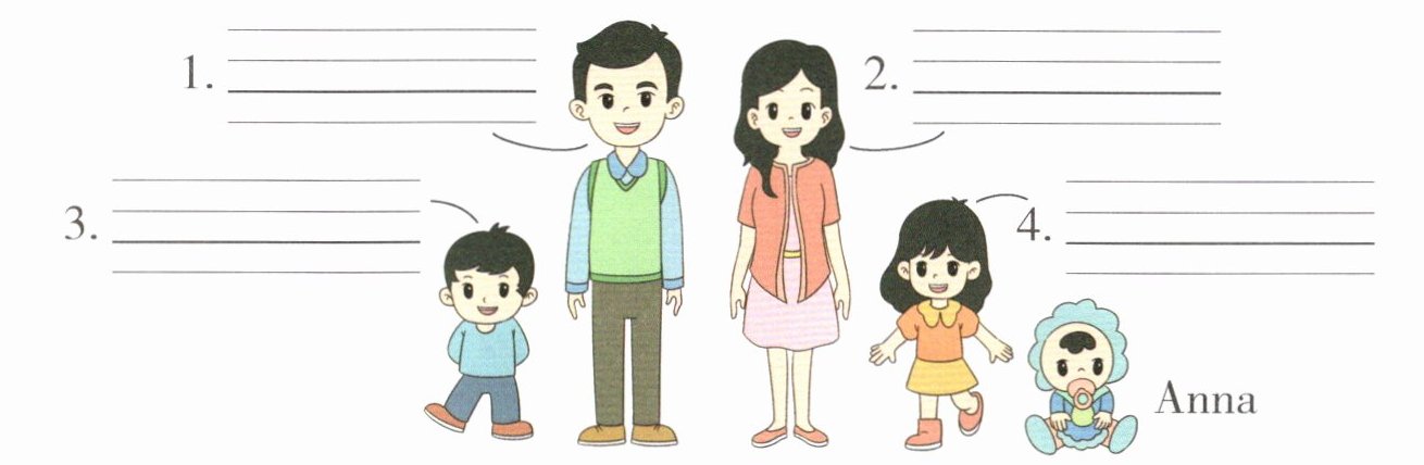 一 Anna 找到了她幼时的一张照片。将人物称呼写在四线三格内。