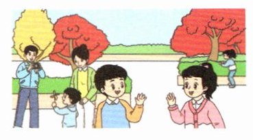 五 根据图片提示,选择相应的句子抄写在四线三格内。
