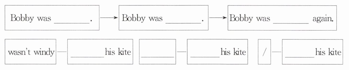 1. We climbed up the hill. It was windy there. 2. Is this your kite? 3. Sam wants to know why. 4. What happened then? 5. I found it near the hill!