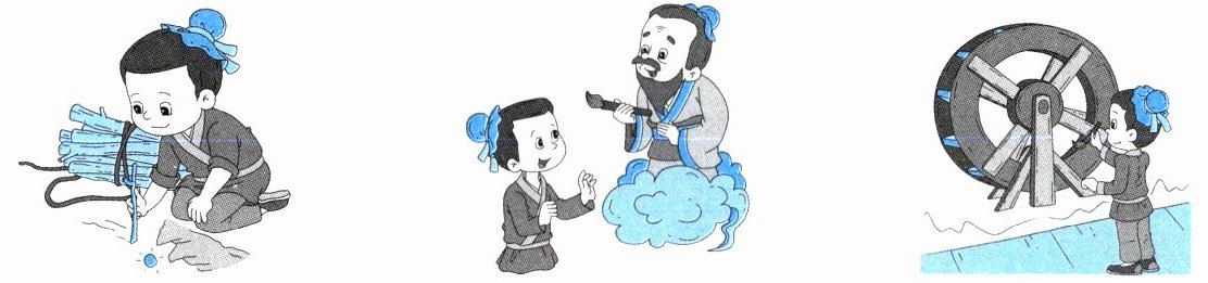 你知道《神笔马良》的故事吗?以下是《神笔马良》绘本的部分配图,请你参照图片,使用一般过去时讲述这段情节吧。