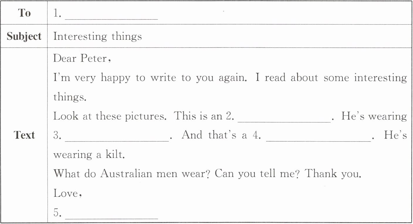 三 新语篇 电子邮件 Wang Bing 正在给他的笔友 Peter 写邮件,向他介绍自己所了解到的英美文化。请你从方框中选择正确的词汇完成邮件。