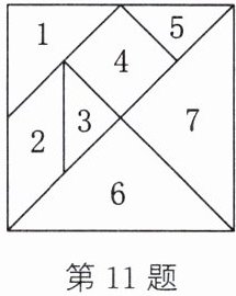11. (新情境·游戏活动)如图,用“七巧板”的7块板能拼成一个正方形,那么能否用其中的2块拼成一个正方形?用3块呢?若能,请画出你的拼法并标明所选板的编号;若不能,请说明理由.