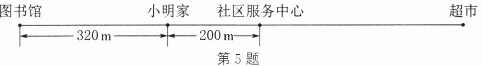 5. (新情境·现实生活)如图,图书馆、小明家、社区服务中心和超市在同一条笔直的马路上.若小明家位于图书馆和超市所连线段上靠近图书馆的三等分点处,则社区服务中心和超市的距离为