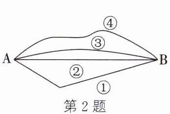 2. (新情境·现实生活)如图,从学校 A 到书店 B 有①②③④四条路线.其中,最短的路线是(