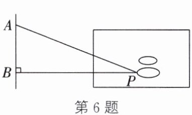 6. (新情境·现实生活)如图,在运动会上,甲、乙两名同学测得小明的跳远成绩分别为$PA= 5.52m$,$PB= 5.13m$,则小明跳远的真实成绩为