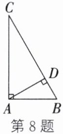 8. 如图,$AB\bot AC$,$AD\bot BC$,垂足分别为A,D,则其长度能表示点到直线的距离的线段共有(