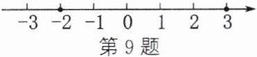9. 如图,在数轴上表示-2的点与表示3的点之间的距离是 (