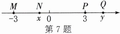 7. (2023·徐州改编)如图,数-3,x,3,y在数轴上的对应点分别为M,N,P,Q,则这四个数中,绝对值最大的数对应的是 (