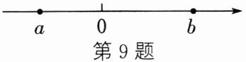 9. (数形结合思想)有理数a,b在数轴上对应点的位置如图所示,比较大小(填“>”“<”或“=”):